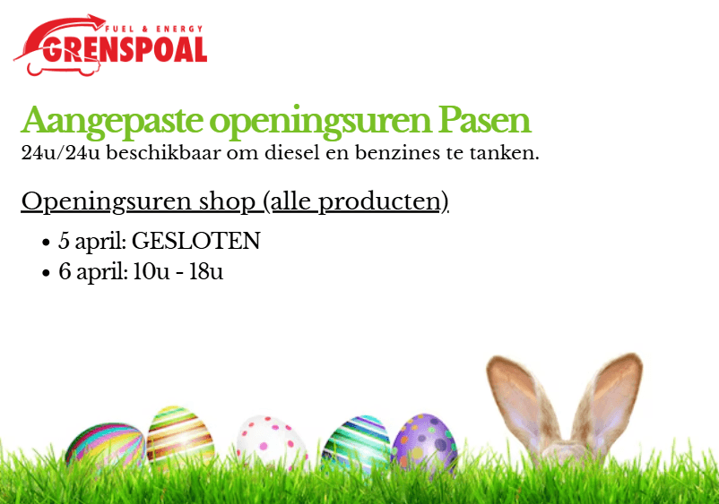 Aangepaste openingstijden pasen!